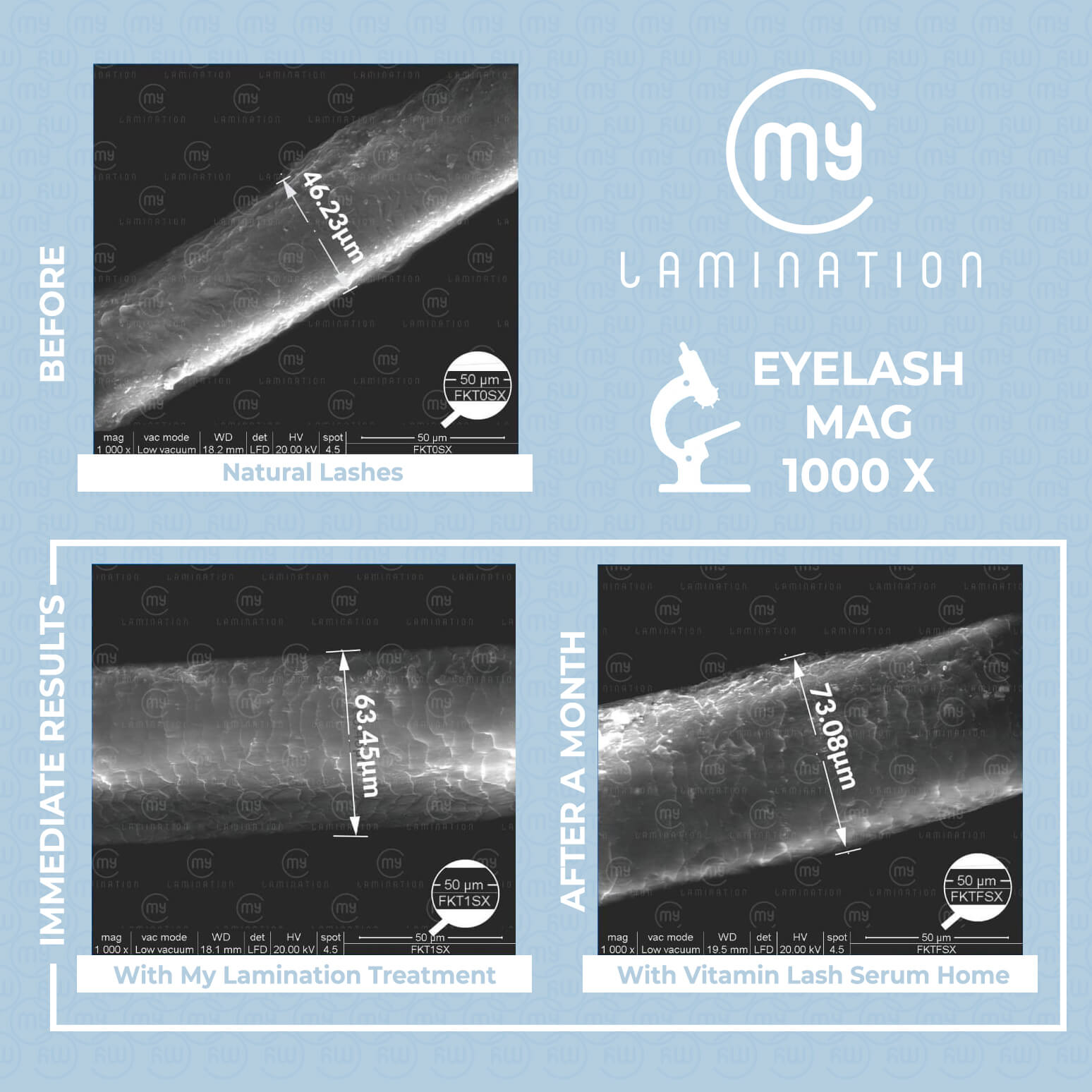 The purpose of the study was to evaluate the volumizing effectiveness of a professional cosmetic treatment on eyelashes by measuring the diameter of the collected eyelashes, expressed in microns, using an ESEM electron microscope.